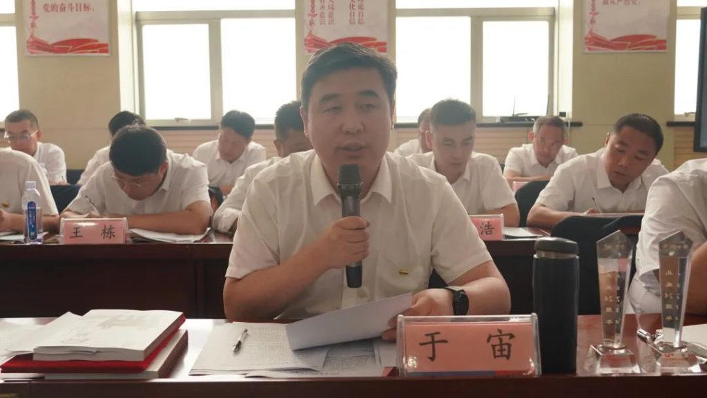 大元集團副總裁、工會主席張春榮通報集團上半年考核結果。